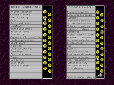 software uses a metaphor of a chemistry department building, but
